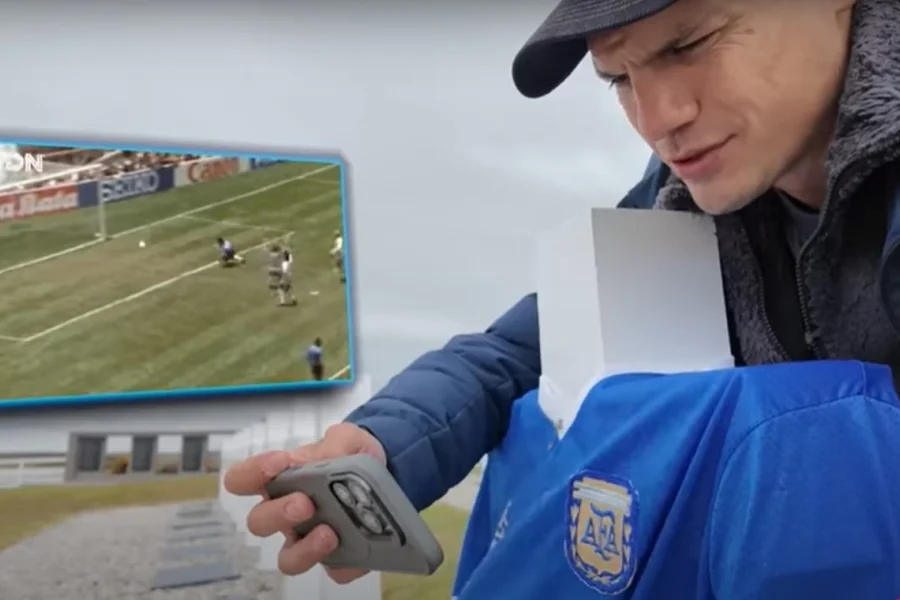 "Don José Luis, usted ha sido el escogido que va a representar a todos los soldados caídos en este cementerio que no pudieron ver el partido", contó a cámara, mientras le ponía la camiseta a la cruz que acompañaba la tumba. "Usted porta en este momento la camiseta del 10, la camiseta de Maradona. En ese importante Mundial de Fútbol se encontraría Argentina contra Inglaterra. Y Argentina le ganó a Inglaterra con dos deliciosos goles de Maradona, uno que se considera hasta la fecha el mejor gol de la historia de todos los mundiales":