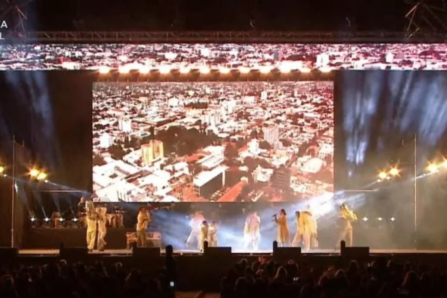 Este lunes 19 de mayo, desde las 21:30 horas, el sector de La Vieja Estación fue el escenario de un espectáculo deslumbrante que reunió a más de 130 artistas riojanos en escena. La celebración incluyó música, danza, teatro, videoarte y artes visuales, con una orquesta en vivo y una puesta artística de primer nivel.