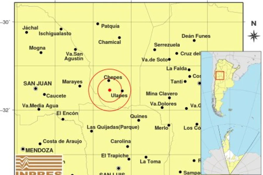 El primero de los sismos ocurrió a las 14.03, en la zona de los llanos, ya que según informó el Instituto Nacional de Prevención Sísmica, tuvo su epicentro a 25 km al sur de la ciudad de Chepes, cabecera departamental de Rosario Vera Peñaloza.