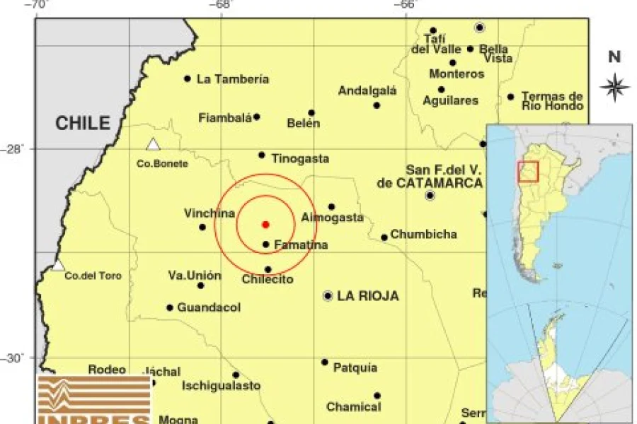 En ese sentido, el Instituto Nacional de Prevención Sísmica informó que el primero de los temblores ocurrió a las 5.05, con epicentro a 52 km al norte de Chilecito, a 67 km al este de Vinchina y a 72 km al oeste de Aimogasta. Dicho sismo tuvo una magnitud de 2.5 y se ocasionó a una profundidad de 130 km.