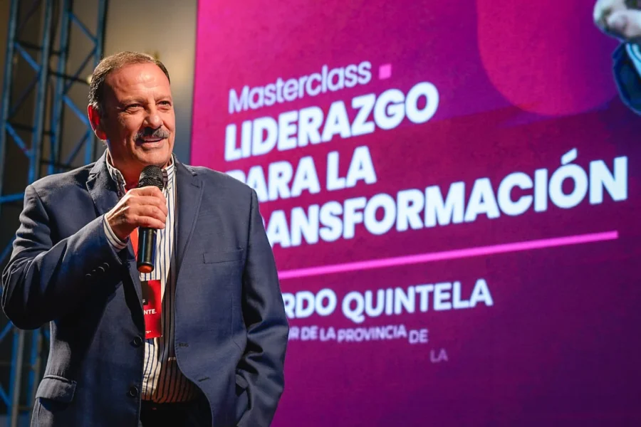 El gobernador, Ricardo Quintela, participó en el salón Coty Agost del Paseo Cultural, de la conferencia "La táctica y la estrategia ante un contexto volátil y de incertidumbre", a cargo del Programa Facundo Quiroga, escuela de Gobierno y Liderazgo a cargo del Instituto Visión Argentina.