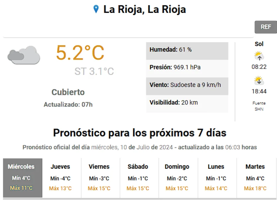 Agrandar imagen Enviar Imprimir Miércoles con bajas temperaturas y cielo mayormente nublado Unirme al canal de Whatsapp de "Nueva Rioja"