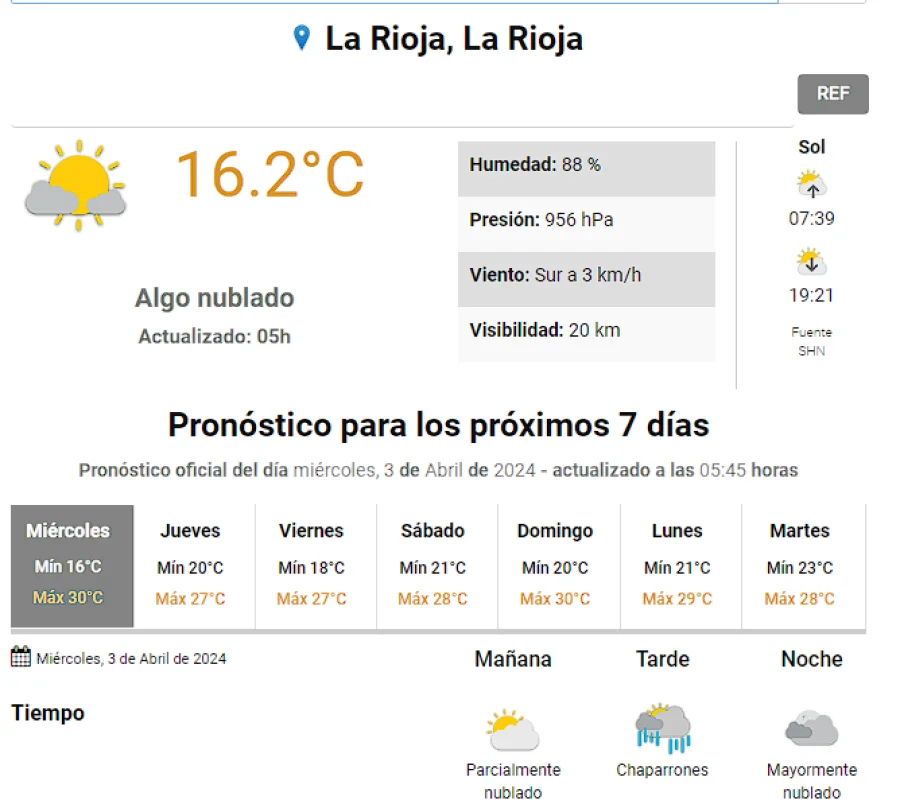 Agrandar imagen Enviar Imprimir Miércoles con probabilidad de lluvias ligeras Unirme al canal de Whatsapp de "Nueva Rioja"