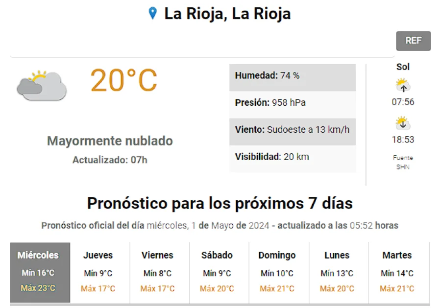Agrandar imagen Enviar Imprimir Miércoles con probabilidades de lluvias Unirme al canal de Whatsapp de "Nueva Rioja"