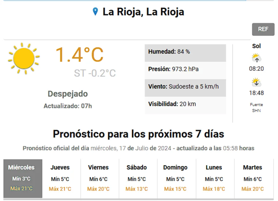 Agrandar imagen Enviar Imprimir Miércoles con temperaturas más cálidas en Capital Unirme al canal de Whatsapp de "Nueva Rioja"