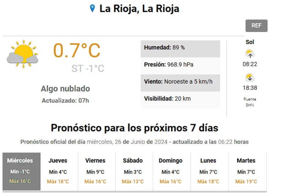 Agrandar imagen Enviar Imprimir Miércoles con temperaturas muy bajas en la Capital Unirme al canal de Whatsapp de "Nueva Rioja"