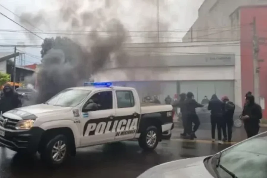 La tensión con los policías comenzó esta madrugada cuando tomaron el Comando Radioeléctrico Uno, ubicado sobre la avenida Uruguay, en pleno centro de Posadas. Allí, cortaron la calle, incendiaron neumáticos y armaron una olla popular a la hora del almuerzo y la cena.