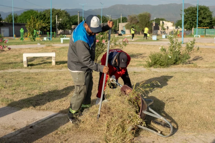 Las tareas incluyeron limpieza general y un minucioso desmalezado de las áreas verdes, lo que permitió recuperar un espacio público clave para la recreación y el encuentro comunitario.