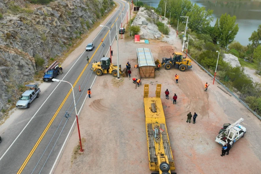 El operativo de traslado se concretó poR la traza de la RN 75 en sentido descendente oeste – este desde el km 18 hasta el empalme con la RN 38, luego se transitó por RN 38 hasta el empalme con RP 5 y desde allí se dejó en guarda la estructura en las instalaciones del Escuadrón 58 de Gendarmería Nacional en la provincia. Para hacer efectiva esta medida se dispuso de un carretón de carga, dos palas cargadoras mecánicas y vehículos livianos de apoyo como así también de la pericia del recurso humano especializado de Vialidad Nacional dispuesto para tal fin.