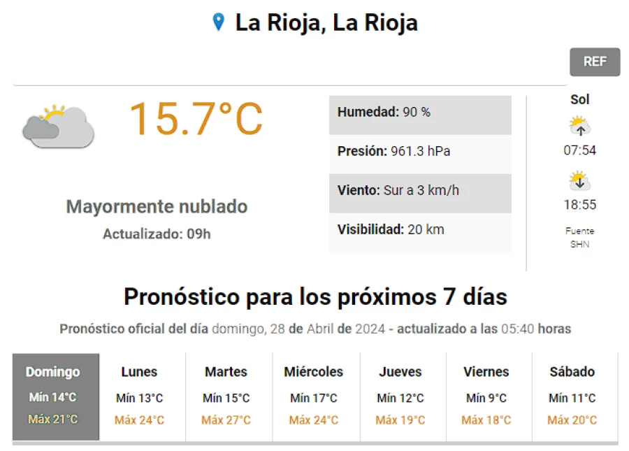 Agrandar imagen Enviar Imprimir Permanece el tiempo fresco para este domingo en la Capital Unirme al canal de Whatsapp de "Nueva Rioja"