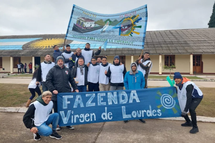 La caminata consiste cuando estamos dentro de la Fazenda, en la Fazenda, los chicos hacen un proceso adentro, que es un proceso de un año, que es lo que la obra los invita a hacer el proceso de un año, pero ellos pueden dar el tiempo que ellos deseen. El proceso es un año, ahí ellos reciben un diploma, van pasando por distintas etapas en ese proceso y luego, una vez que ellos reciben el diploma, tienen que seguir perseverando en el grupo o estar también al servicio del Señor, porque no solo es perseverar en el grupo, sino estar también al servicio. También cuando tenemos servicio, siempre, es amar al otro.