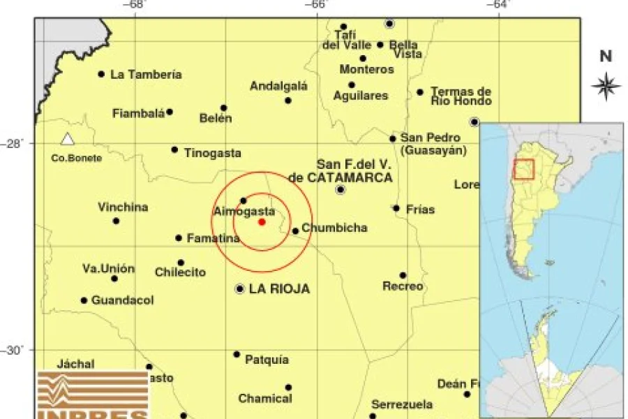 El primero de los temblores ocurrió a las 5.12, con una magnitud de 2.6 y a una profunidad de 34 km. El epicentro fue a 75 km al norte de la ciudad de La Rioja y 30 km al sudeste de Aimogasta, cabecera del departamento Arauco.