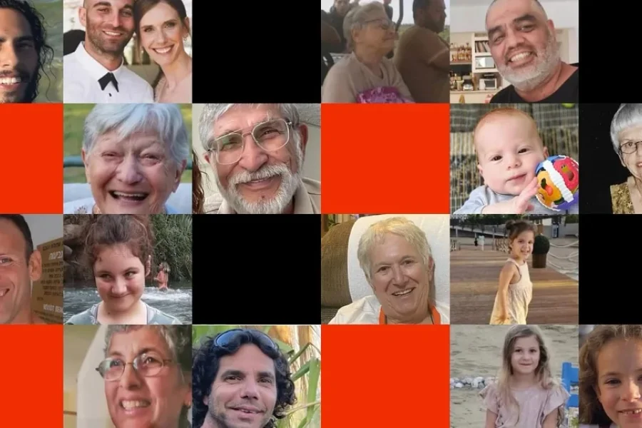 Las primeras personas que aparecen en pantalla son imágenes de niños, bebés y familias enteras, todas israelíes, para después dar lugar a todos los argentinos que están desaparecidos.