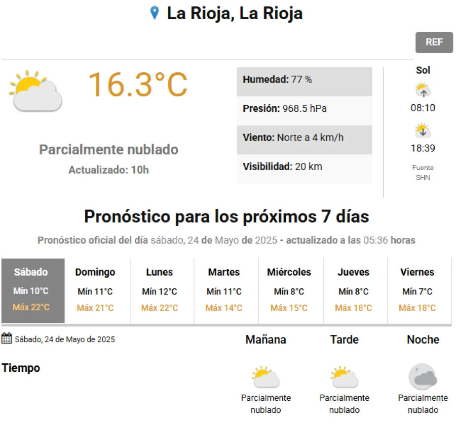 La temperatura máxima para hoy será de 22 grados.