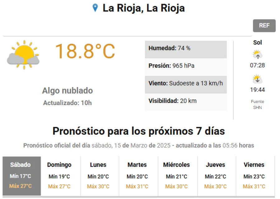 Agrandar imagen Enviar Imprimir Sábado con cielo algo nublado y temperaturas agradables Unirme al canal de Whatsapp de "Nueva Rioja"