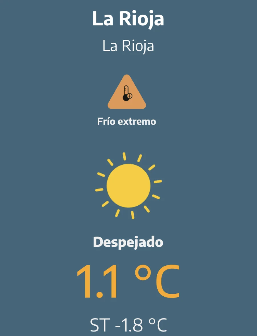 Agrandar imagen Enviar Imprimir Sábado con cielo despejado y bajas temperaturas en Capital Unirme al canal de Whatsapp de "Nueva Rioja"