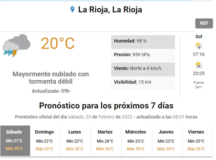 Agrandar imagen Enviar Imprimir Sábado con probabilidad de lluvia en la Capital Unirme al canal de Whatsapp de "Nueva Rioja"