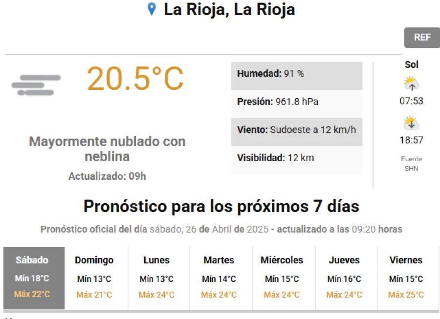 Agrandar imagen Enviar Imprimir Sábado nublado en la Capital Unirme al canal de Whatsapp de "Nueva Rioja"