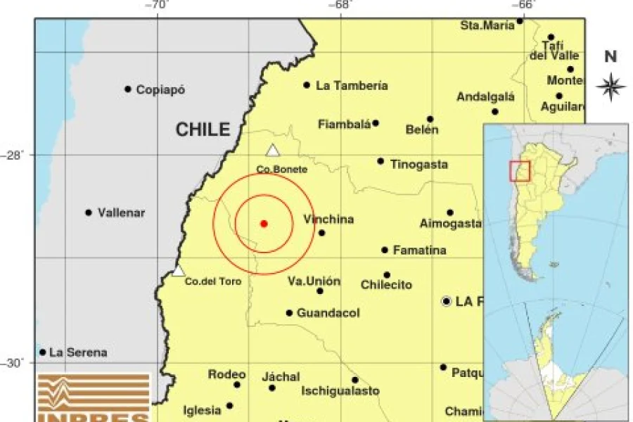 El INPRES informó que el fenómeno ocurrió exactamente a las 15.51, en la zona precordillera riojana, ya que el epicentro fue situado a 39 km al sur de Laguna Brava, a 62 km al oeste de Vinchina y a 78 km al sur de Cerro Bonete Chico.
