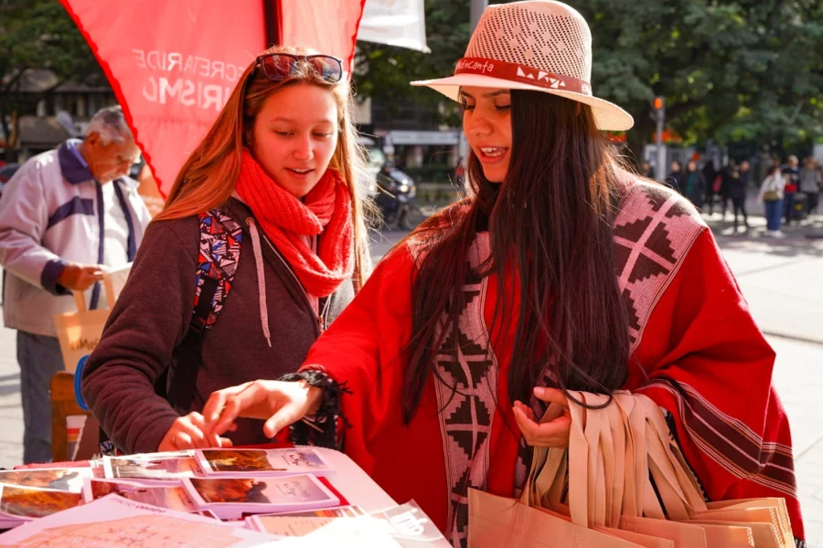 El colorido y toda la esencia riojana se puso de manifiesto en la Plaza Vélez Sarsfield, punto neurálgico de transeúntes, cautivando a todas y todos los cordobeses con música en vivo, danza, degustación de vinos riojanos y toda la información turística.