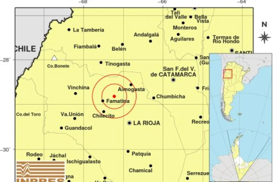 El epicentro fue situado a 75 km al noroeste de la ciudad de La Rioja y a 30 km al este de Famatina.