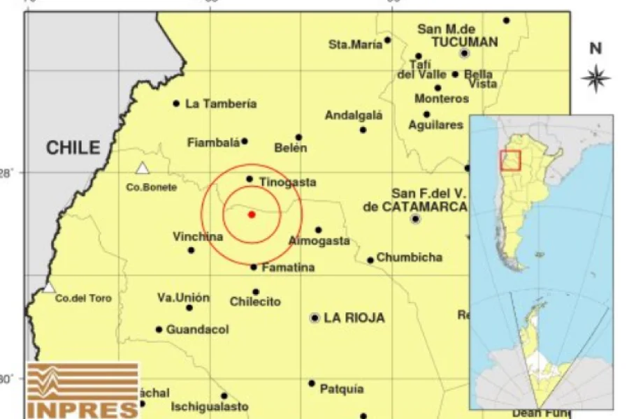 El epicentro se registró a 130 km al NO de La Rioja, cerca del limite con la provincia de Catamarca, con una profundidad dde 126 Km. El movimiento telúrico fue registrado, según el INPRES, a las 10:17 horas de este sábado.