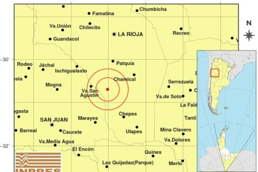 El epicentro estuvo situado a 144 km al sur de la ciudad de La Rioja y 43 km al este del Valle San Agustín, en la provincia de San Juan.