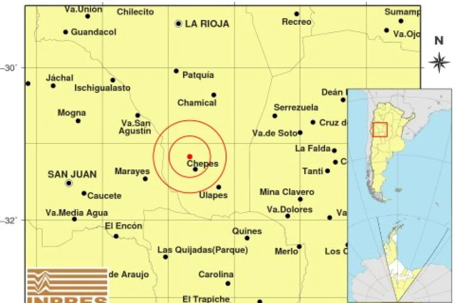 El temblor se produjo a las 10.20, en la zona de los llanos, con epicentro a 22 km al noroeste de Chepes, a 61 km al noroeste de Ulapes y a 97 km al sur de Chamical.