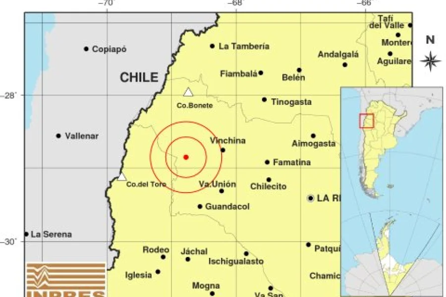 El temblor tuvo su epicentro a 56 km al oeste de Vinchina, a 59 km al sur de Laguna Brava y a 77 km al norte de Guandacol.