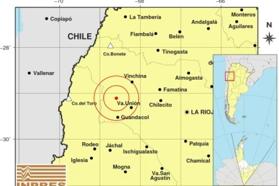 El sismo sucedió a las 10.51, en el oeste provincial, ya que el epicentro fue situado a 46 km al norte de la localidad de Guandacol, a 55 km al sudoeste de Vinchina y a 91 km al sur de Laguna Brava.
