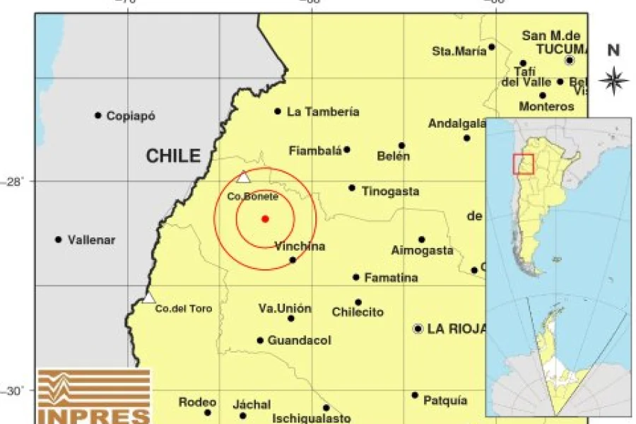 El temblor, según reportó el Instituto Nacional de Prevención Sísmica, ocurrió en la región oeste, cerca de la precordillera riojana, ya que su epicentro fue situado a 34 km al este de Laguna Brava; a 49 km al sudoeste del Cerro Bonete y 52 km al noroeste de la localidad de Vinchina.