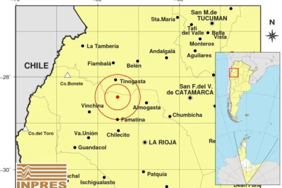 El Instituto Nacional de Prevención Sísmica detalló que el temblor ocurrió en el oeste provincial, ya que el epicentro fue situado a 70 km al oeste de la ciudad de Aimogasta y a 77 km al noreste de Vinchina.