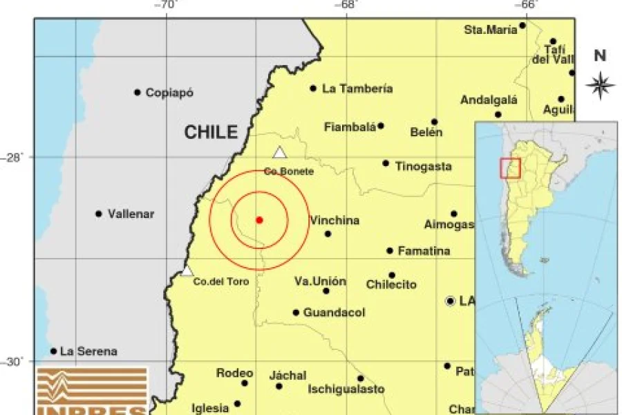 En ese sentido, el epicentro fue situado a 35 km al sur de Laguna Brava, a 75 km al oeste de Vinchina y a 76 km al sur del Cerro Bonete.