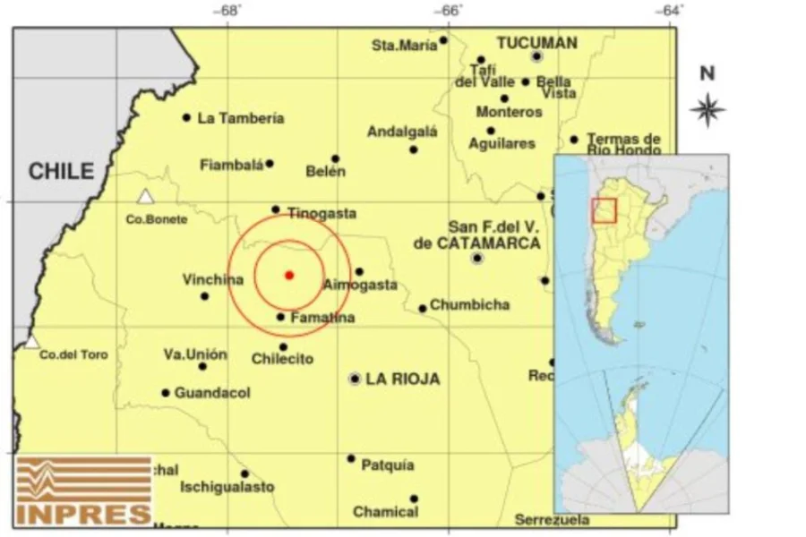 El Inpres detalló además que el epicentro fue a unos 37 kilómetros de Famatina. Es por eso que en varias localidades de este departamento, como Campanas y Santo Domingo, se percibió con mayor potencia e inclusive provocó algunos derrumbes y daños estructurales en viviendas y edificios históricos.