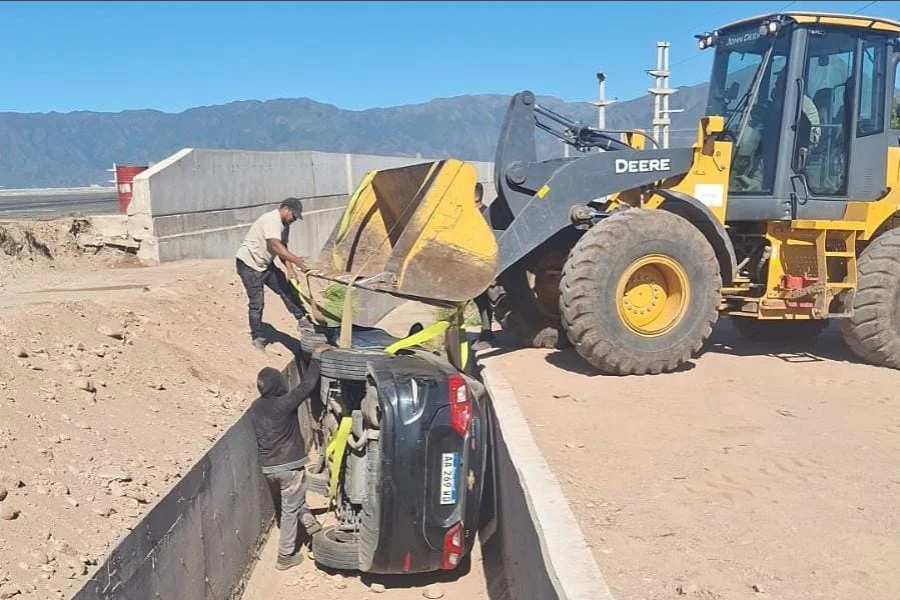El sorprendente accidente de tránsito ocurrió por Avenida Felix de la Colina y calle Olsacher. Luego del hecho, la Policía entrevistó a una ciudadana, quien manifiestó haber querido acortar el trayecto de circulación por entre los tachos de señalizacion vial, sin percatarse que en esa dirección hay un desagüe, cayendo en el mismo y quedando incrustado el vehiculo.