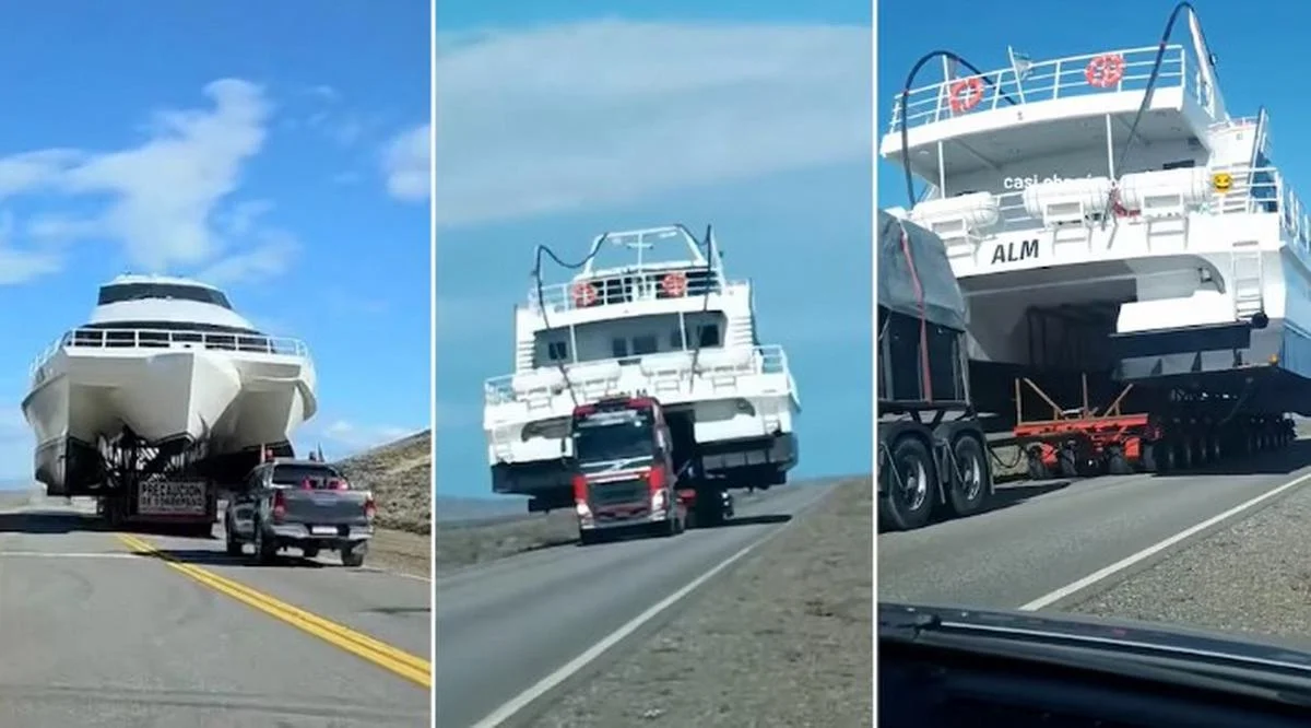 Un enorme catamarán sorprende en la Ruta 40 y se vuelve viral. Un insólito espectáculo se vivió este fin de semana en la Ruta 40, provincia de Santa Cruz, cuando una familia se cruzó con un gigantesco catamarán trasladado por un camión. El video del encuentro, que muestra las impresionantes dimensiones de la embarcación ocupando ambos carriles, se volvió viral en redes sociales, alcanzando cerca de 10 millones de reproducciones y más de 400 mil likes.