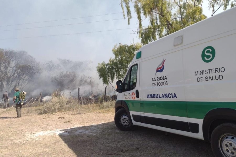 Ante la intensa columna de humo se dispuso, de un dispositivo sanitario a través de la zona sanitaria, que llevan a cabo unidades de Salud de Famatina, Campana, La Cuadra y Pituil, para la asistencia de personas afectadas por la inhalación de humo.