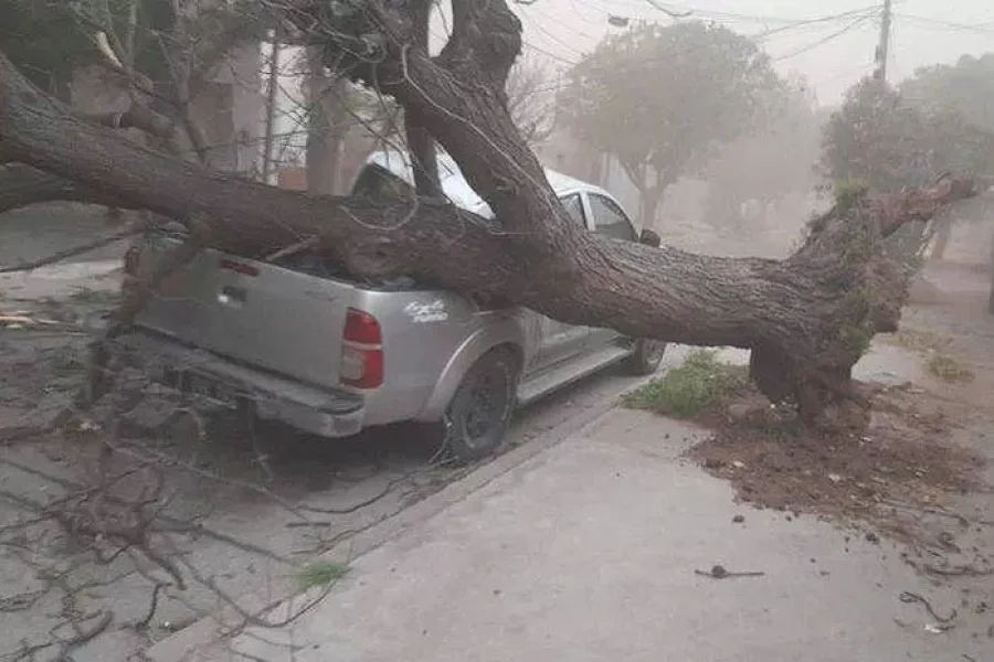 Un fuerte viento, acompañado de agua y de granizo, causó la caída de árboles, derribó postes, produjo el desprendimiento de chapas y, según informan las autoridades de emergencia ocasionó daños en viviendas.