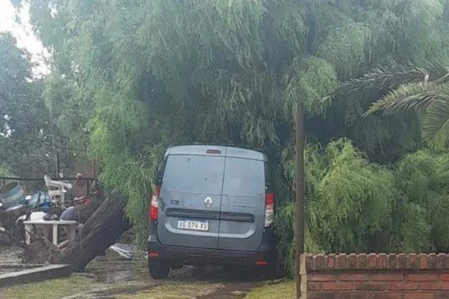 Medios de la región indicaron que se registraron caídas de árboles y alumbrado público. Varias casas y vehículos terminaron dañados tras el paso del temporal. Además no hay energía eléctrica ni comunicación telefónica.