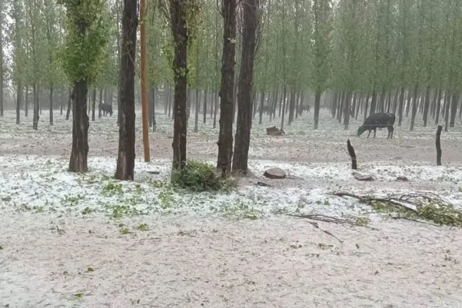 Una fuerte tormenta de granizo ocurrió este viernes a la tarde en General Alvear, particularmente en los distritos de Bowen y Carmensa. Cerca de las 18, el fenómeno climático que azotó al departamento sureño arrasó con gran parte de los cultivos y hasta con algunos animales de granja.