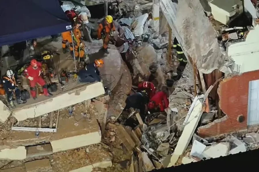 En las imágenes, difundidas por Mediodía Noticias (eltrece), se puede ver cómo cuatro trabajadores realizaban tareas en lo que aparenta ser el exterior de la planta baja. Se observa una gran cantidad de escombros en el piso que corresponden a las columnas de ese sector que fueron derrumbadas.