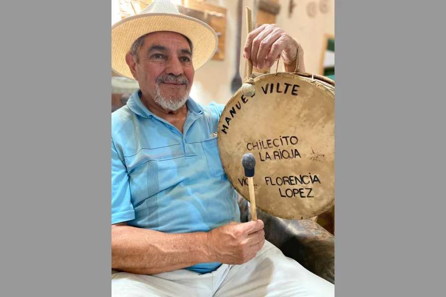 Es ineludible el agradecimiento constante al aporte valioso de la cultura que Manuel genera dentro y fuera de la Perla del Oeste. No es simplemente parte de ella, tampoco se ajusta a ser un gestor cultural, es un actor principal en cada episodio donde él es, permanece y seguirá siendo… Manuel Vilte conoce desde las entrañas el patrimonio riojano, reconoce lo que dignifica y destaca el arte, la música, literatura y todas las aristas alrededor de cada una de ellas. Un día escuché sonar su caja chayera en el patio más emblemático de Chilecito: “El patio de los Vilte”. Su voz cruzó el umbral de las coplas que salieron de su alma, vibrando en el tono adecuado y dejando entrever el amor eterno que se queda sobre el cuero de una caja. Manuel está hecho de música, de relatos, de tiempos con amigos, de dolorosas despedidas, de lágrimas y risas alrededor de una mesa. Está hecho de lealtad y cariño, es de buena cepa riojana.