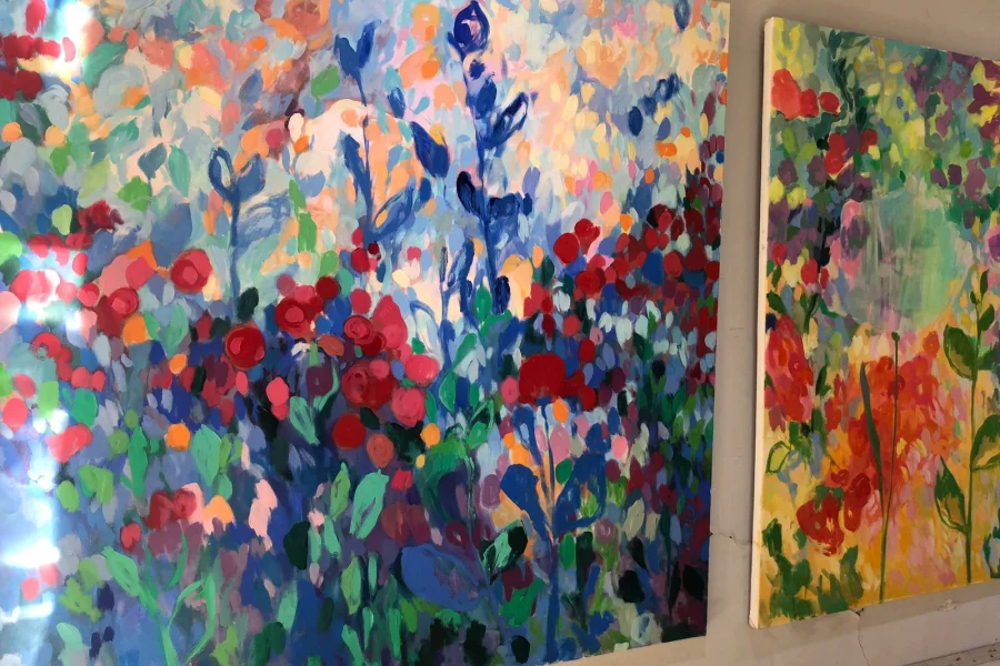 Esta muestra es atrapante desde el primer vistazo, la luz que se filtra por los ventanales del salón, se posan suavemente en el lienzo. Y desde ahí los secretos de las flores hablan ante los ojos de aquellos que quieran observar con la misma atención, sin prisas, con deleite en cada detalle…y sentir lo que puede decir un jardín al óleo.