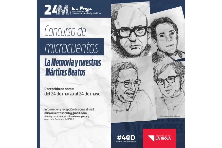 El Gobierno de La Rioja, a través de la Secretaría de Derechos Humanos y la Secretaría de Culturas y su programa Letras en Conexión, convocan al Primer Concurso de Poesía y al Tercer Concurso de Microcuentos “La memoria y nuestros Mártires Beatos”.