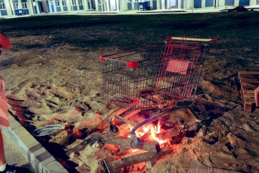 Un grupo de hinchas argentinos que está en Qatar no pudieron perder la costumbre de cocinar un asado y se la rebuscaron: usaron un carrito de supermercado como parrilla.
